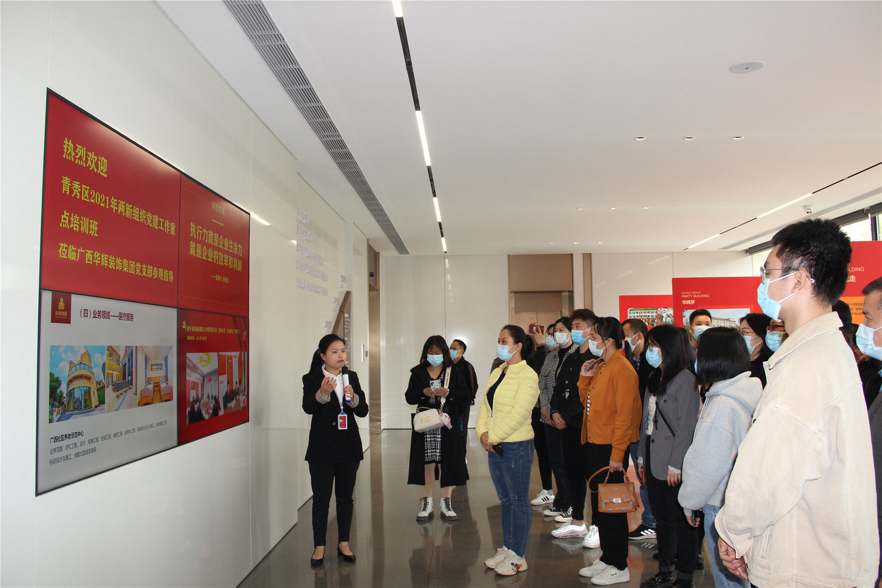 ▲2021年12月15日,南寧市關(guān)注黨員成長·激發(fā)組織活力”系列培訓(xùn)班蒞臨華輝黨支部參觀指導(dǎo)