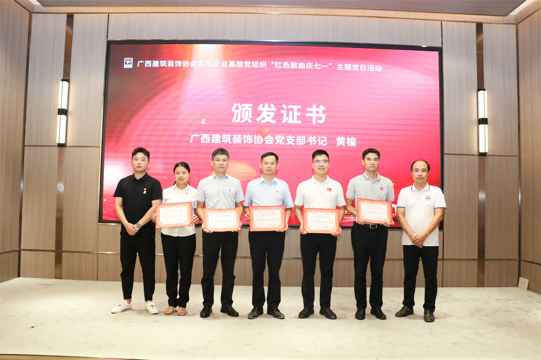 2023年6月29日,廣西建筑裝飾協(xié)會主辦的會員企業(yè)基層黨組織“紅色歌曲慶七一”主題黨日活動在南寧開展,華輝黨支部積極組織黨員參加。黨員們在重溫經典的同時,在思想上接受了一次黨性教育的洗禮,進一步傳承紅色革命精神,堅定永遠跟黨走的理想信念。