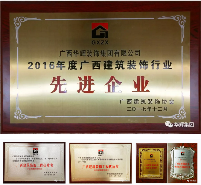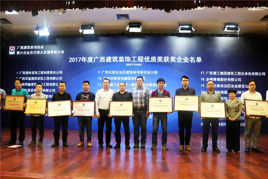 會(huì)議上還舉行了隆重的頒獎(jiǎng)儀式,華輝裝飾集團(tuán)喜獲多個(gè)獎(jiǎng)項(xiàng):華輝承建的德利·東盟國(guó)際文化廣場(chǎng)裝修工程、大唐·天城項(xiàng)目售樓部裝修工程榮獲2017年度廣西建筑裝飾工程優(yōu)質(zhì)獎(jiǎng)(公共建筑裝飾類(lèi))”,“2016年度廣西建筑裝飾行業(yè)先進(jìn)企業(yè)”,“2016年度廣西建筑裝飾行業(yè)優(yōu)秀企業(yè)經(jīng)理”及“2016年度廣西建筑裝飾行業(yè)優(yōu)秀建筑裝飾設(shè)計(jì)師”榮譽(yù)稱(chēng)號(hào)。