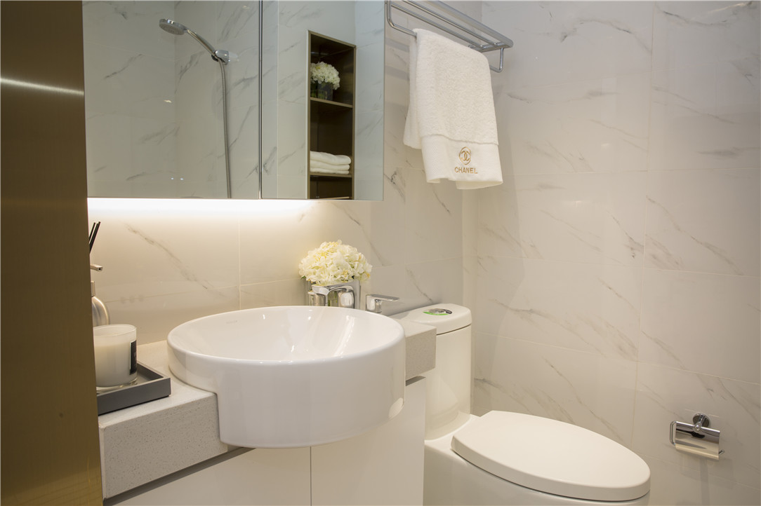 ▲衛(wèi)生間干濕分離設(shè)計(jì),將洗漱、洗浴功能有效分區(qū),合理的收納讓空間更加簡(jiǎn)潔有序。