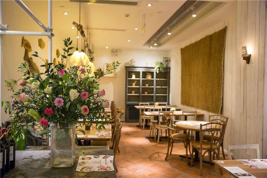 用餐區(qū)的裝修保持了烏瑪一貫簡潔優(yōu)雅的調(diào)性,白色墻面和木質(zhì)桌椅,以及墻上別致的小擺件,在柔和的黃色燈光下,有種令人放松的親切感。隨意挑個(gè)心儀的位子坐下,點(diǎn)上一份西餐,沒有外部世界的叨擾,這里足以讓你填飽肚子,慰藉心靈,達(dá)到身心的雙重統(tǒng)一。
