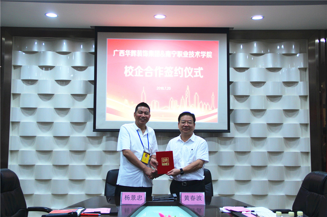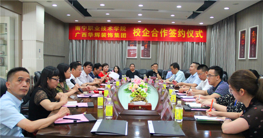 7月20日,在廣西建筑裝飾行業(yè)協(xié)會(huì)的有力推動(dòng)下,南寧職業(yè)技術(shù)學(xué)院與廣西華輝裝飾集團(tuán)有限公司簽訂合作協(xié)議,深度推動(dòng)“產(chǎn)學(xué)研”校企合作。
