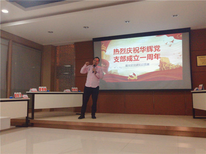 2018年11月15日,華輝裝飾集團黨支部成立一周年慶?;顒郁唿h建黨史知識競賽在華輝集團舉行,支部黨員、入黨積極分子以及公司部分干部職工參加了活動。