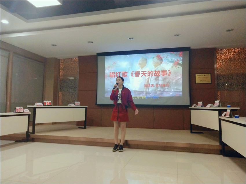 黨員一曲紅歌《春天的故事》為大家展開改革開放史詩般的壯麗畫卷,現(xiàn)場全體人員齊聲高唱《歌唱祖國》,用歌聲表達濃濃愛黨愛國之情。