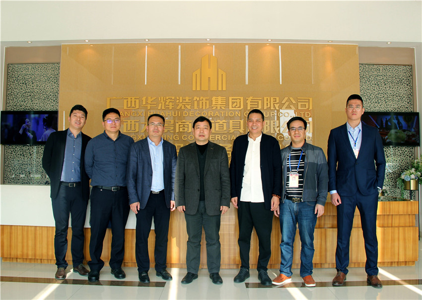 2018年11月28日,自治區(qū)住房和城鄉(xiāng)建設(shè)廳副廳長(zhǎng)楊綠峰、科技處副處長(zhǎng)兼裝配辦副主任喬永平,廣西建筑裝飾協(xié)會(huì)會(huì)長(zhǎng)龐耀國(guó)到華輝裝飾集團(tuán)指導(dǎo)工作。