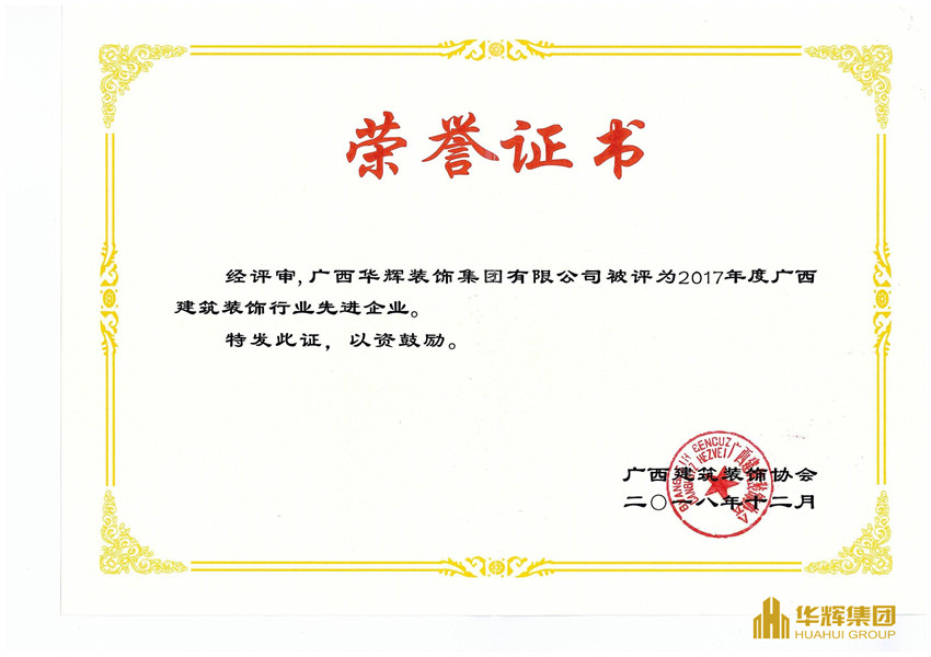 華輝裝飾集團自加入廣西建筑裝飾協(xié)會后,在協(xié)會的指引幫助下,深耕裝飾工程領域,實力不斷增強。