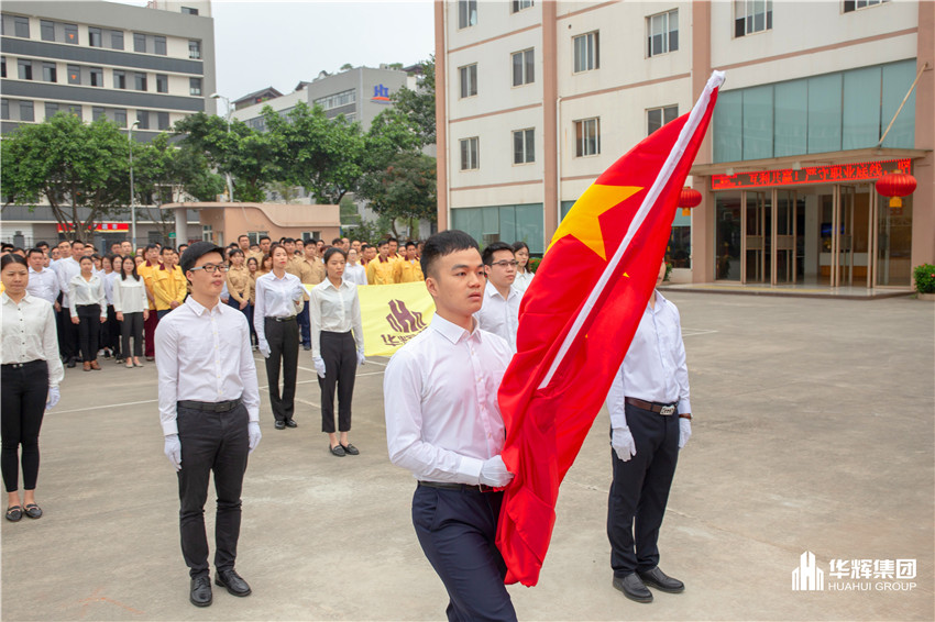 2019年4月13日清晨,嘹亮的國歌聲在華輝集團奏響,莊嚴(yán)神圣的升旗儀式在集團操場隆重舉行。