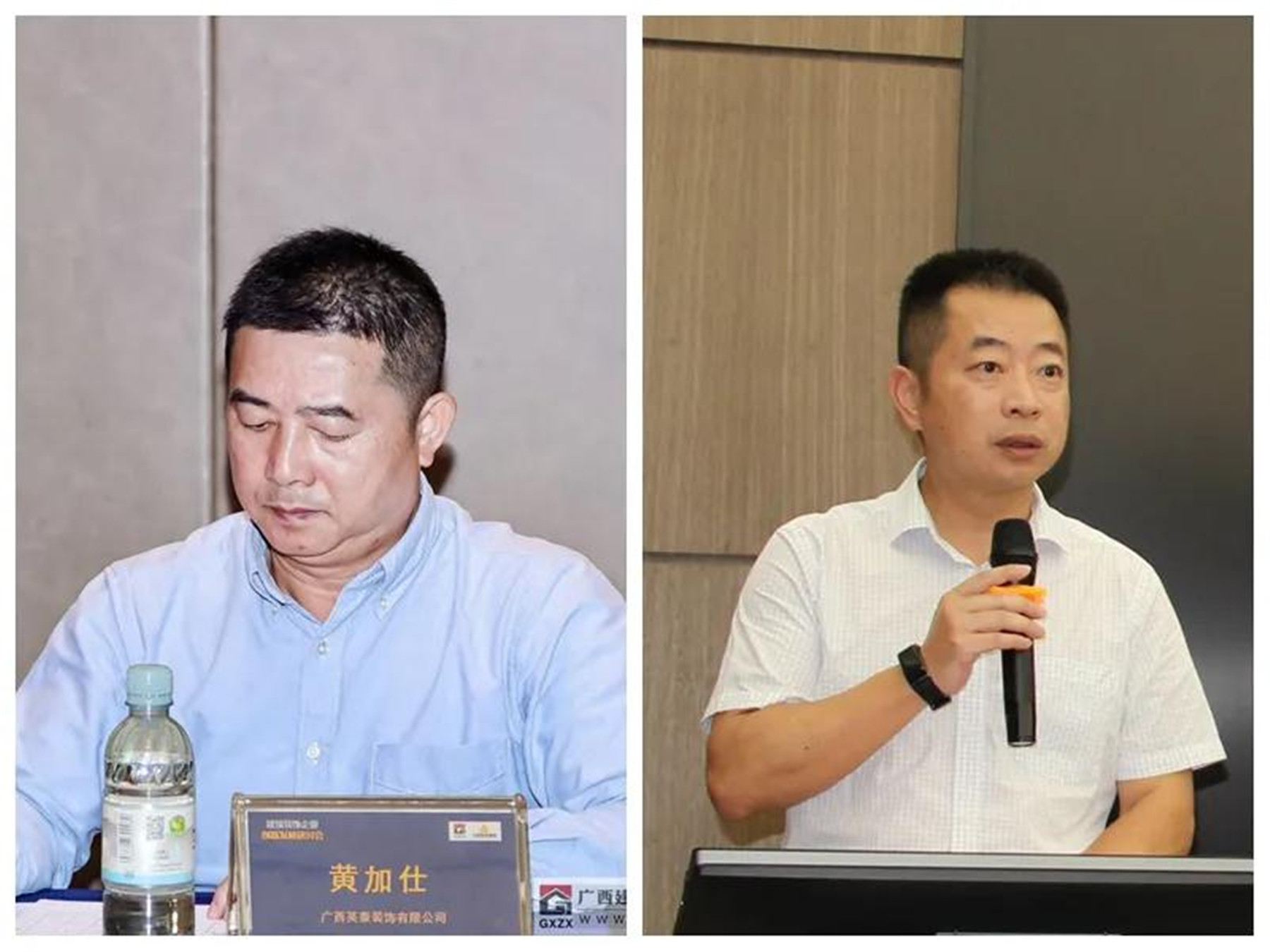 ▲(左)監(jiān)事長(zhǎng)、廣西英泰裝飾有限公司總經(jīng)理 黃加仕,(右)廣西建筑裝飾協(xié)會(huì)副秘書(shū)長(zhǎng) 譚謙