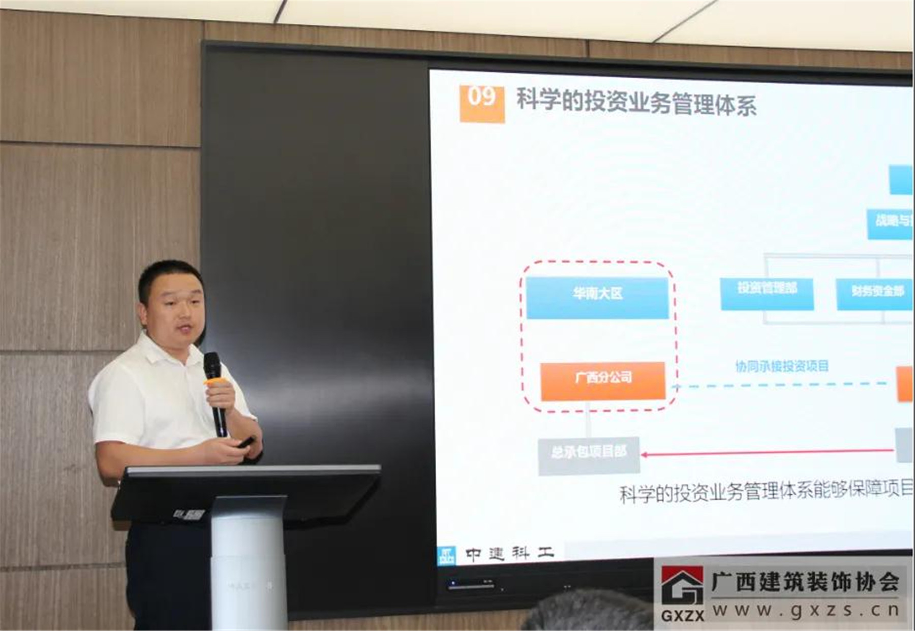 廣西三源裝飾工程有限公司副總經(jīng)理陳遠(yuǎn)立為與會(huì)嘉賓做了“EPC項(xiàng)目經(jīng)驗(yàn)分享”。