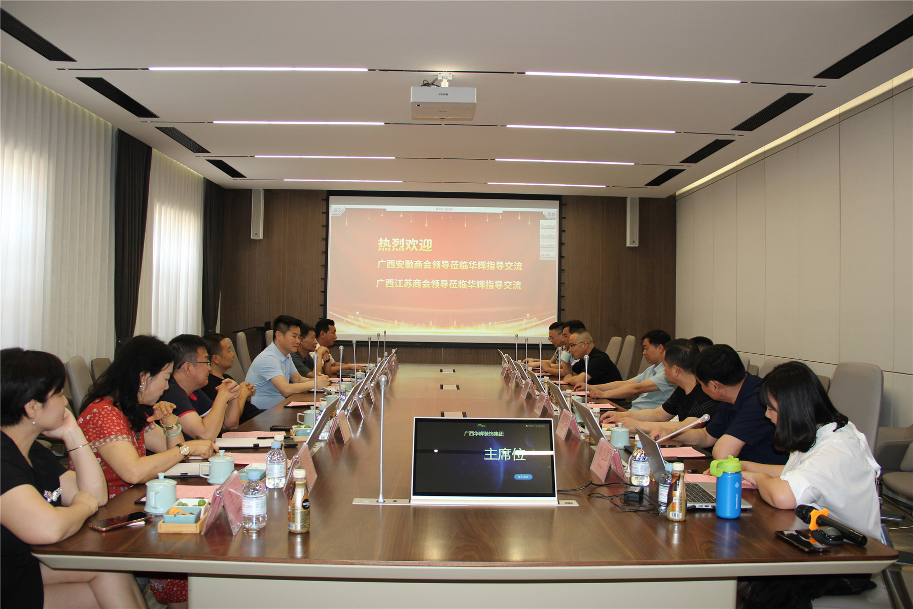2021年5月9日,廣西安徽商會(huì)會(huì)長(zhǎng)李傳德,秘書(shū)長(zhǎng)吳格飛,執(zhí)行會(huì)長(zhǎng)趙勝利、郭中華,副會(huì)長(zhǎng)徐兵、鄭華、張清華等領(lǐng)導(dǎo)一行到訪華輝裝飾集團(tuán),與廣西江蘇商會(huì)開(kāi)展友好交流,廣西江蘇商會(huì)會(huì)長(zhǎng)施瑞明,執(zhí)行會(huì)長(zhǎng)楊景忠、張賢兵、楊勤偉,常務(wù)副會(huì)長(zhǎng)、人民調(diào)解委員會(huì)主任王月霞等領(lǐng)導(dǎo)出席了座談交流會(huì)。