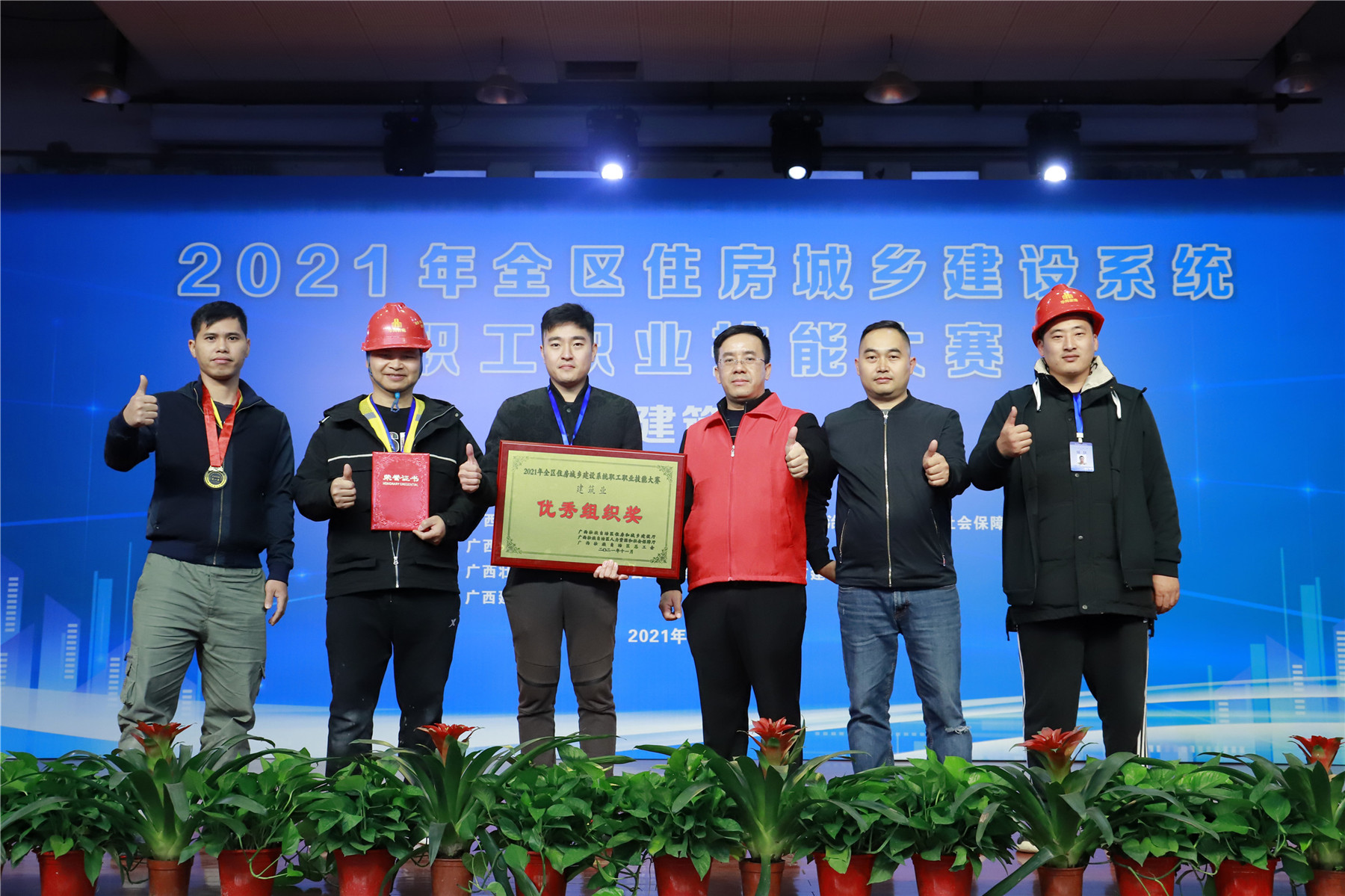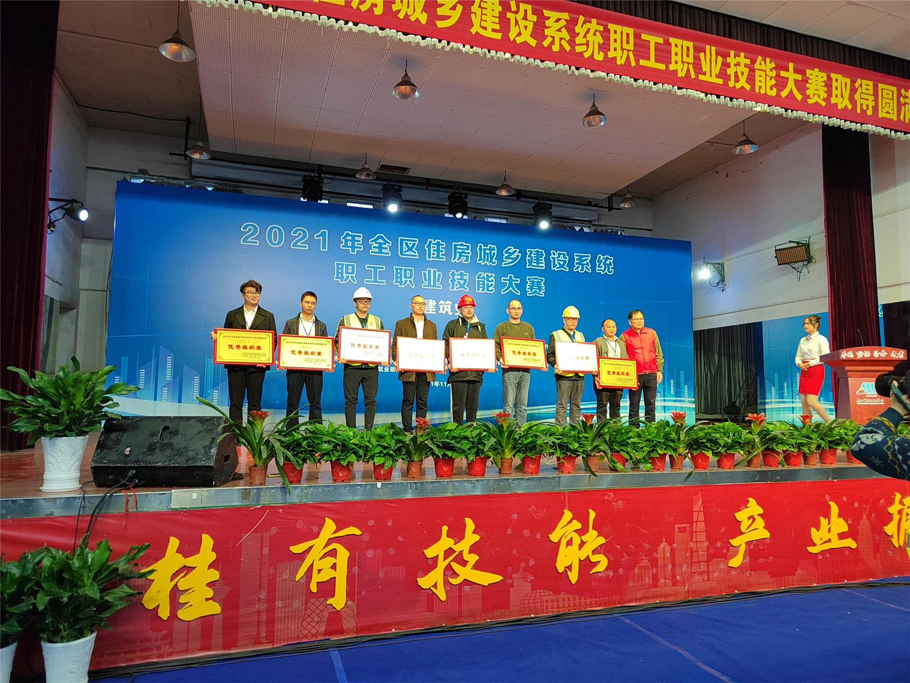 2021年11月17日,全區(qū)住房城鄉(xiāng)建設(shè)系統(tǒng)職工職業(yè)技能大賽在桂林落下帷幕。華輝集團(tuán)參賽選手榮獲瓷磚貼面第一名的好成績(jī),集團(tuán)榮獲“優(yōu)秀組織獎(jiǎng)”。