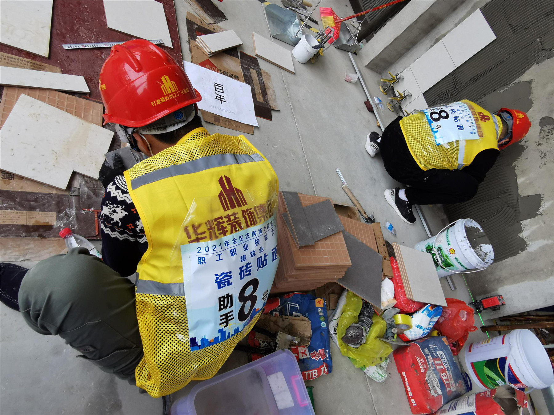 經(jīng)過(guò)兩天激烈的角逐,最終憑借扎實(shí)的基本功、過(guò)硬的心理素質(zhì)和優(yōu)異的臨場(chǎng)發(fā)揮,華輝參賽選手農(nóng)福、農(nóng)旭榮獲瓷磚貼面第一名,賽出了風(fēng)采,更充分展現(xiàn)了華輝人精益求精、勇于拼搏、銳意進(jìn)取的優(yōu)秀品質(zhì)。