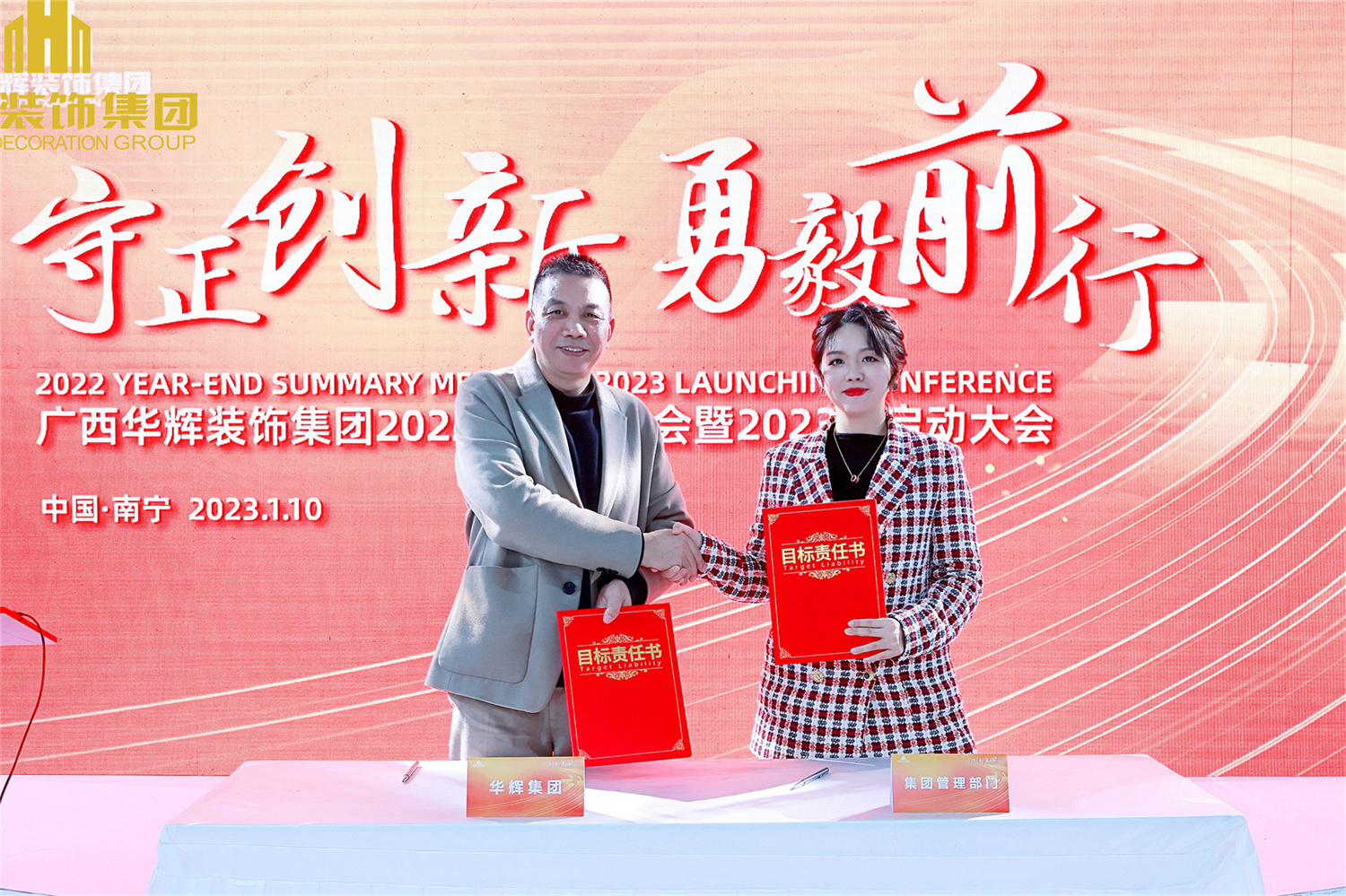 為細化、量化目標責任,全面落實年度業(yè)績總目標,集團與各部門、子公司簽訂了2023年度經(jīng)營目標責任書,明確了考核標準和經(jīng)營指標。全體華輝人以強烈的責任感和使命必達的決心,全面吹響攻堅奪隘的“沖鋒號”。