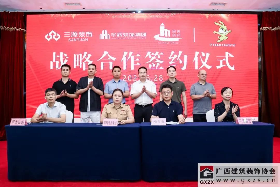 ▲廣西華輝集團、三源公司、呈美集團與德華兔寶寶材料簽約