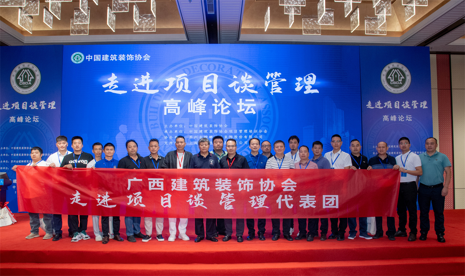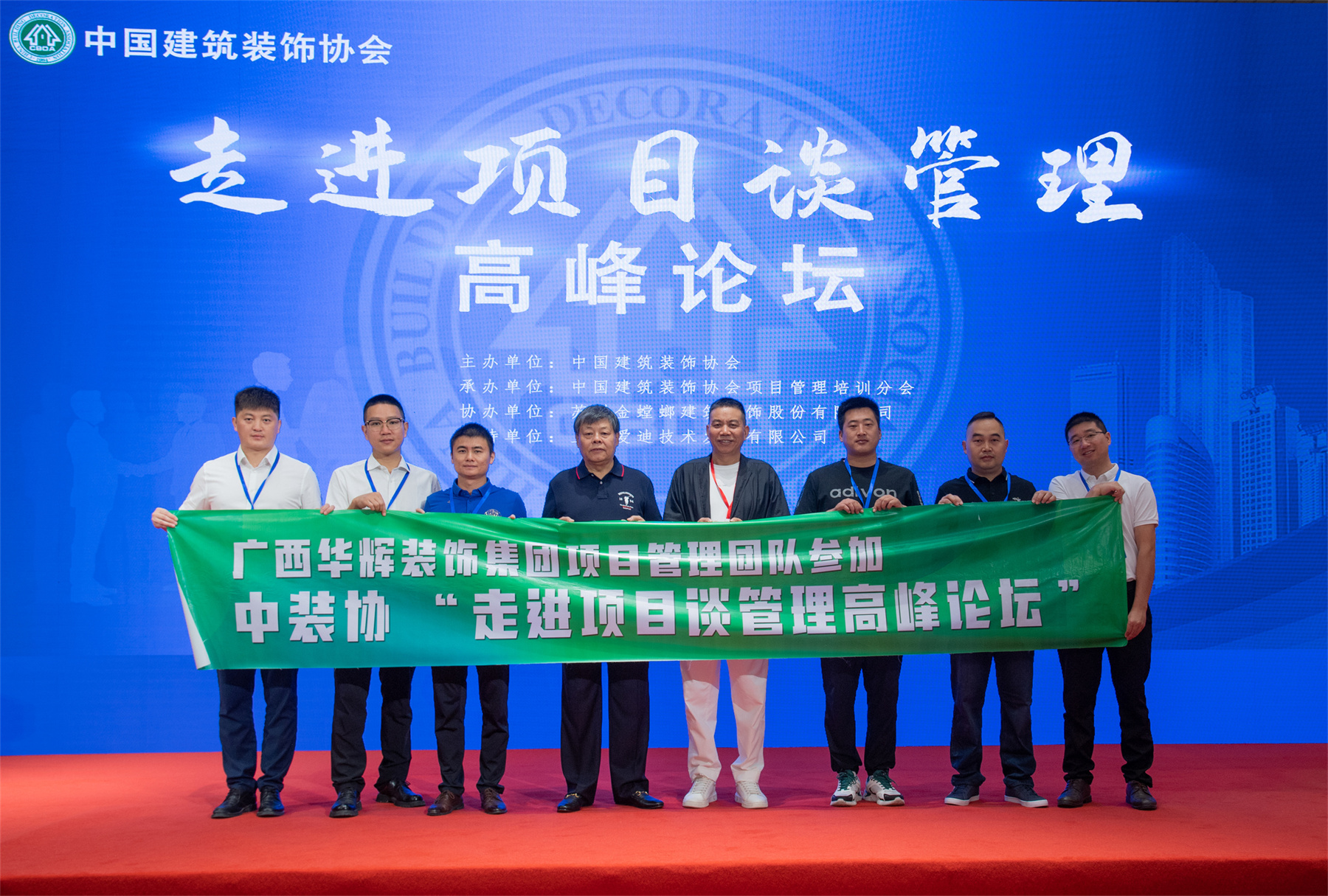 在廣西建筑裝飾協(xié)會會長龐耀國的帶領(lǐng)下,協(xié)會副會長、華輝裝飾集團董事長楊景忠與數(shù)位集團項目管理精英參加了本次盛會。