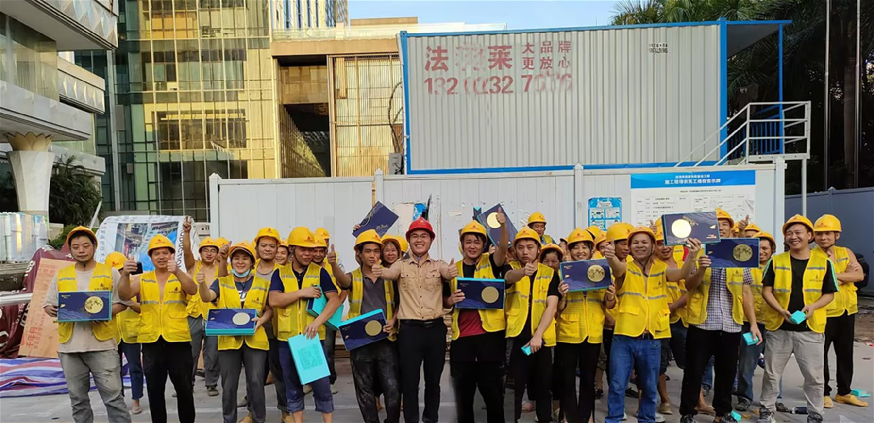 ▲為施工人員送月餅