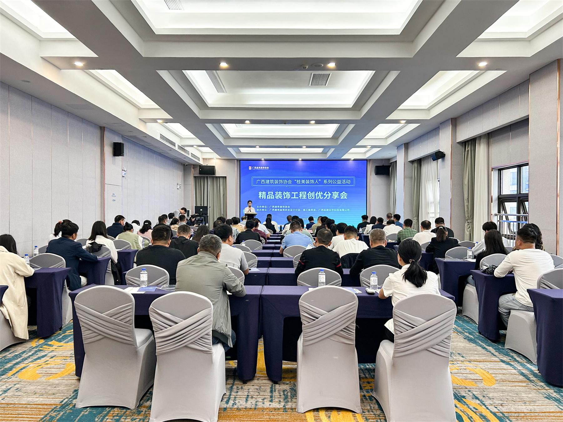 2023年11月6日,廣西建筑裝飾協(xié)會(huì)舉辦“桂美裝飾人”系列《精品裝飾工程創(chuàng)優(yōu)(公益)分享會(huì)》,邀請(qǐng)各會(huì)員單位相互分享交流,借鑒精品工程項(xiàng)目?jī)?yōu)秀的經(jīng)驗(yàn),共同進(jìn)步,提高自身水平,為廣西裝飾行業(yè)創(chuàng)出更多精品工程。