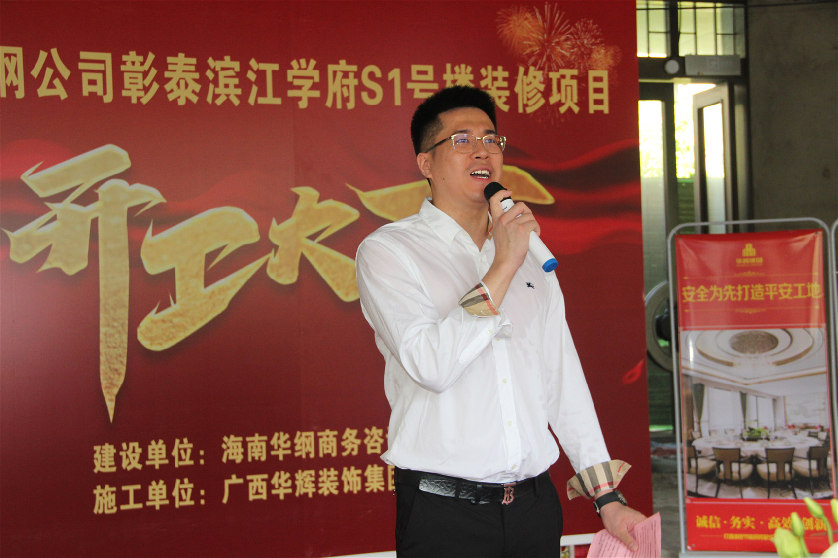 華輝集團(tuán)總裁楊彬也在開(kāi)工儀式上發(fā)表了致辭。他首先對(duì)江南紙業(yè)的信任與支持表示衷心的感謝,并強(qiáng)調(diào):“我們深知此次裝修工程的重要性,它不僅關(guān)乎江南紙業(yè)的形象展示,更是其企業(yè)文化與品牌精神的體現(xiàn)。華輝團(tuán)隊(duì)將全力以赴,以高標(biāo)準(zhǔn)、嚴(yán)要求、精工藝,確保裝修工程的每一個(gè)環(huán)節(jié)都達(dá)到甚至超越客戶的期望。為江南紙業(yè)的員工營(yíng)造一個(gè)舒適、安全、高效的工作環(huán)境。