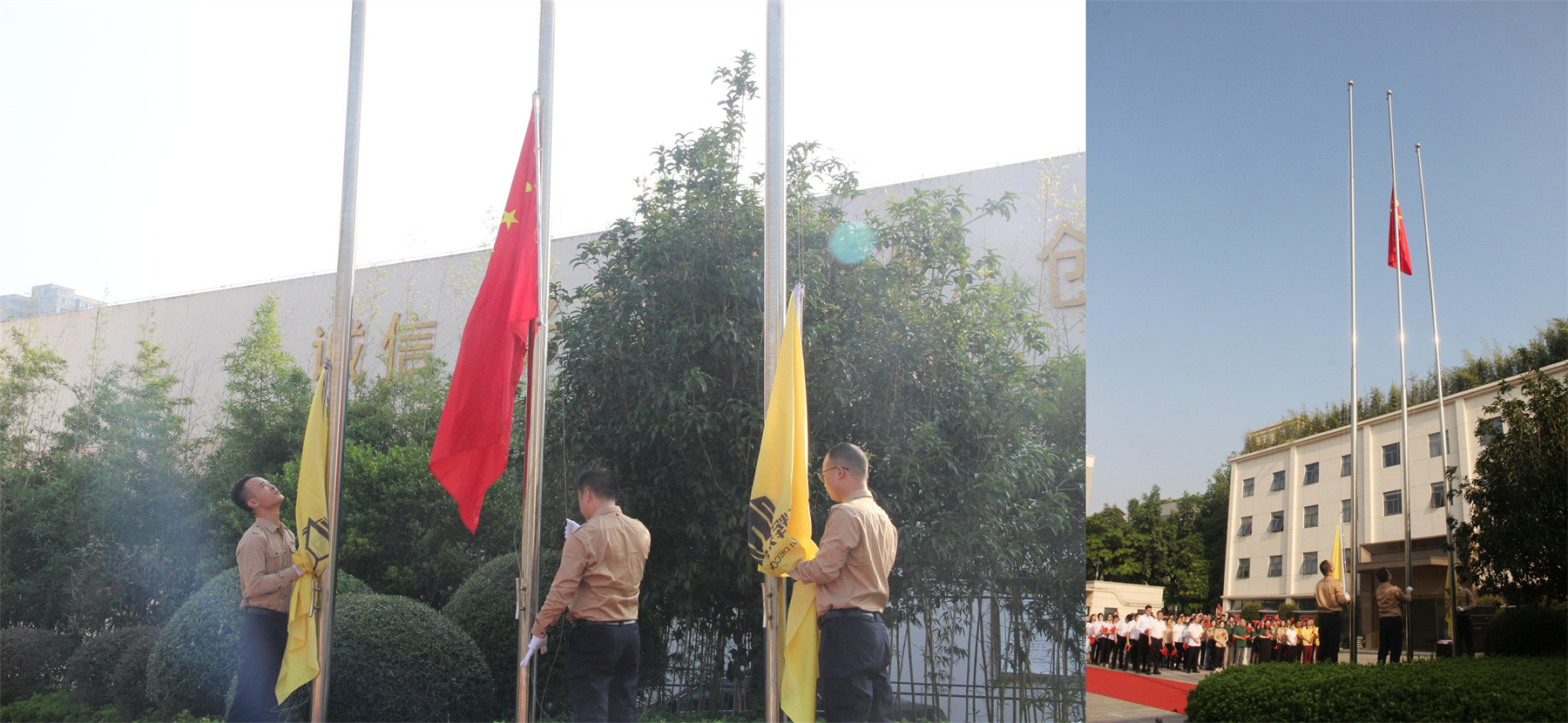 隨著《義勇軍進(jìn)行曲》的激昂旋律響起,鮮艷的五星紅旗在華輝人的注目禮中冉冉升起,迎風(fēng)飄揚(yáng)。滿懷著對(duì)偉大祖國(guó)的熱愛與祝福,在場(chǎng)的每一個(gè)人都肅立致敬。