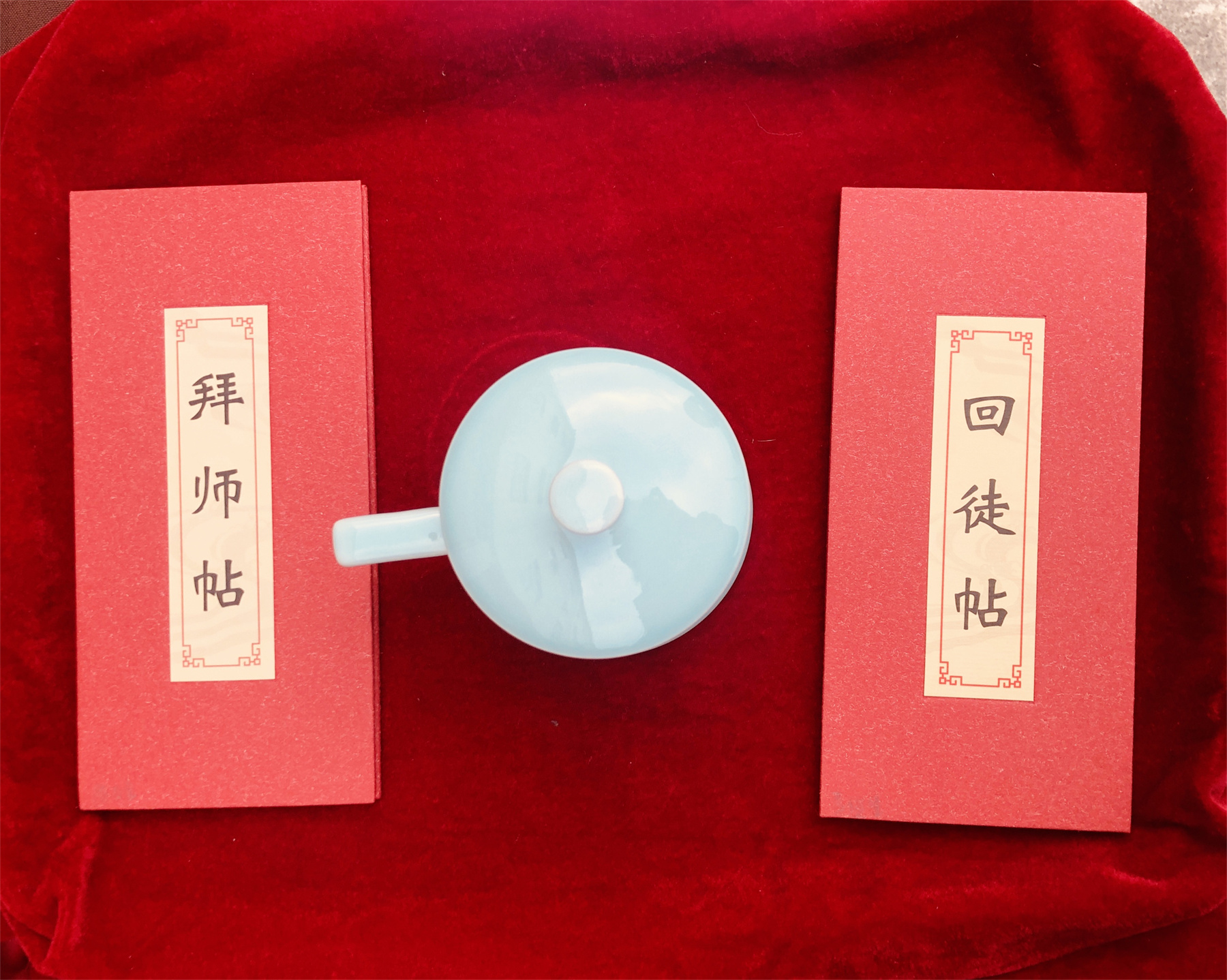 拜師儀式上,在大家的見證下,徒弟向師傅鞠躬并敬上一杯茶以表拜師學(xué)藝的誠意;徒弟呈遞拜師帖,隨后師傅回贈回徒帖。這種傳統(tǒng)的拜師儀式,明確了雙方師徒關(guān)系,同時使師傅更有榮譽感和責(zé)任感,更好的傳道、授業(yè)、解惑;使徒弟更有歸屬感和使命感,充分做到尊師、好學(xué)、求藝。