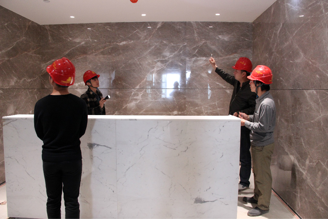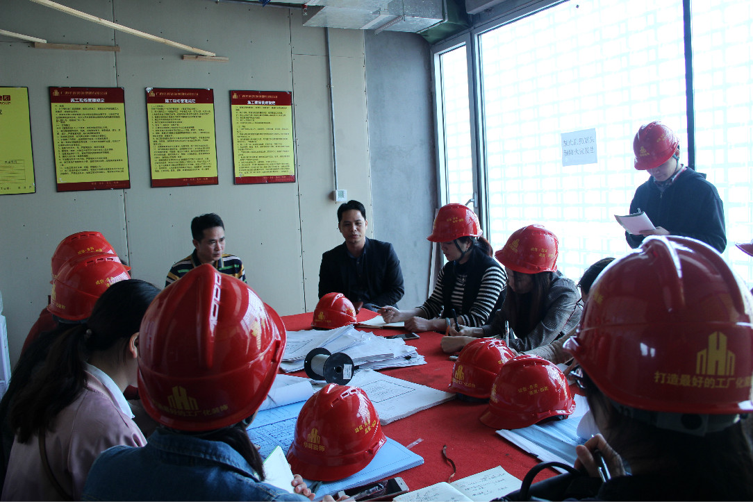 由華輝裝飾集團(tuán)承接的廣西洋浦南華糖業(yè)集團(tuán)辦公樓層室內(nèi)裝修工程已經(jīng)接近尾聲,為不斷完善和改進(jìn)質(zhì)量管理工作,提高質(zhì)量管理水平,打造精品工程,2018年3月26日,集團(tuán)組織工程中心質(zhì)安部、工程管理部等多個(gè)部門聯(lián)合成立自檢自查小組,對該項(xiàng)目的質(zhì)量、工藝進(jìn)行全方位檢查。