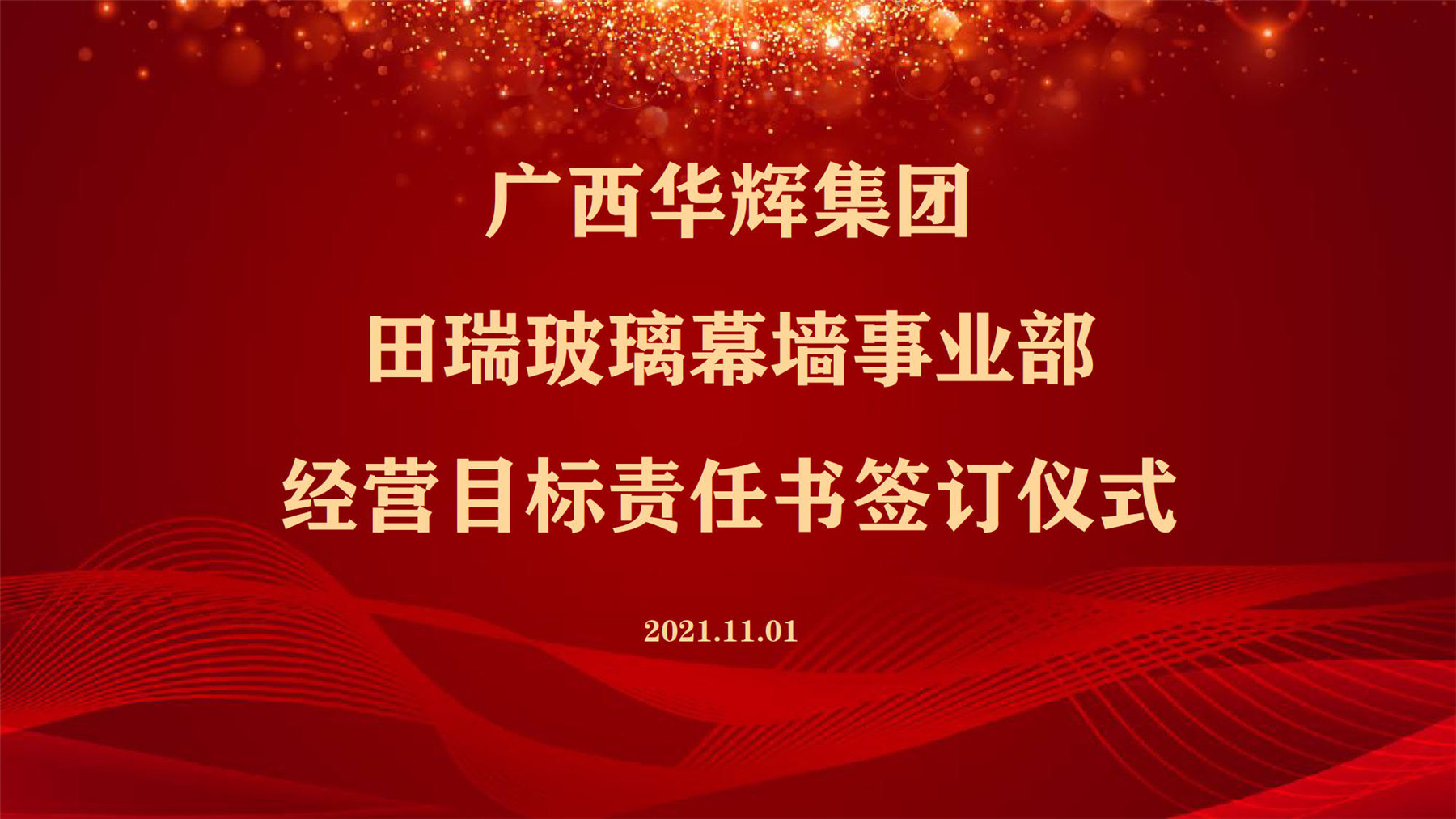 2021年11月1日,廣西華輝裝飾集團(tuán)有限公司與南寧田瑞玻璃有限責(zé)任公司,正式成立“華輝集團(tuán)田瑞玻璃幕墻事業(yè)部”,雙方簽署經(jīng)營(yíng)目標(biāo)責(zé)任書,開啟全新領(lǐng)域的拓展。